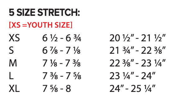 XS: 6 1/2" - 6 3/4" diameter : 20 1/2" - 21 1/2" circumference