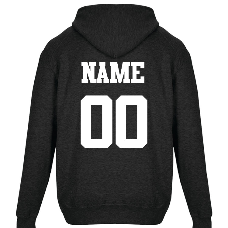 • Add any name and/or any number to any location you'd like Just select Personalization and Type in what you'd like. (i.e. "34/BRUSS on back")