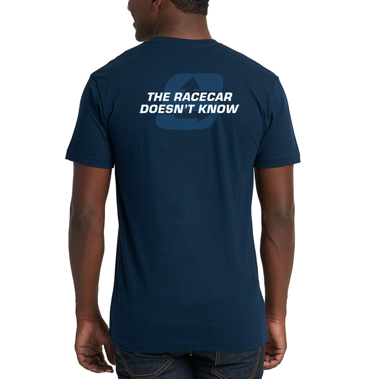 Shift Up Now's Racecar tee, with the ultimate phrase "The Racecar Doesn't Know" who's behind the wheel. Or any other aspect to the racecar.